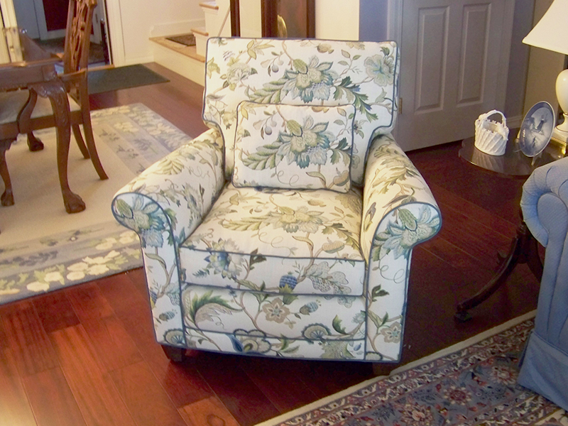 Details: The American Queen Arm chair can come with a camel back like the Wilton Wing Chair. Pick from our wide selection of premium fabrics.